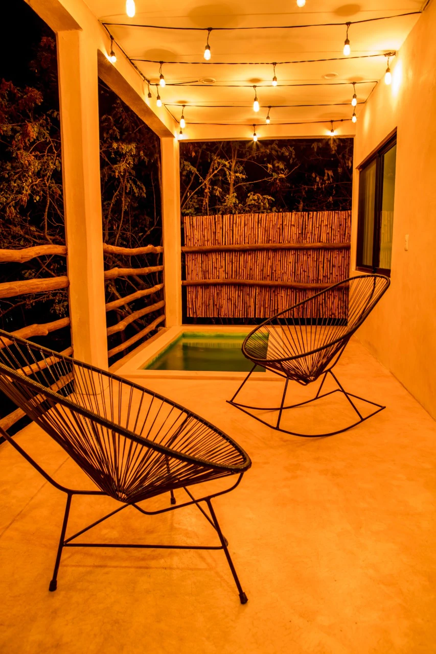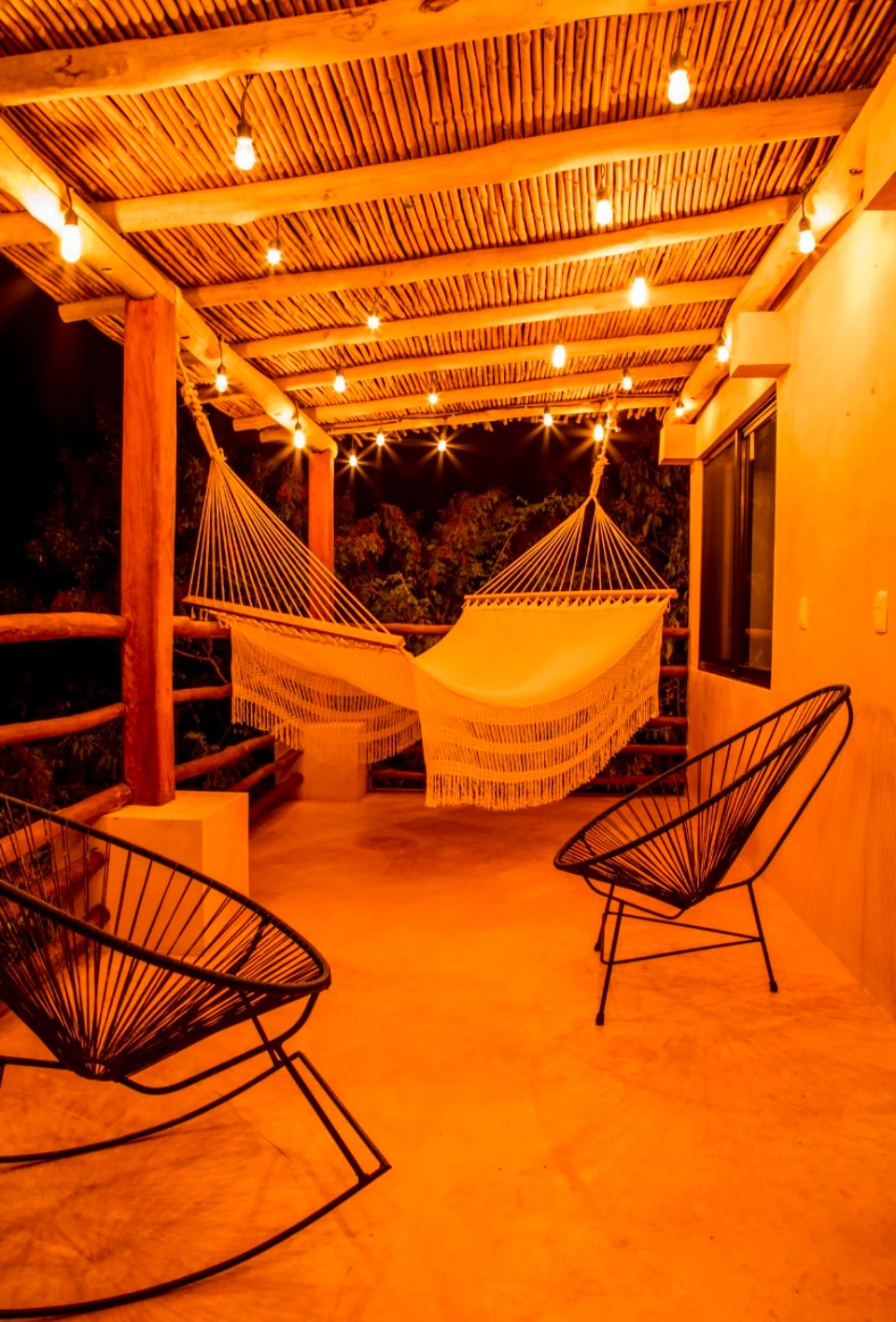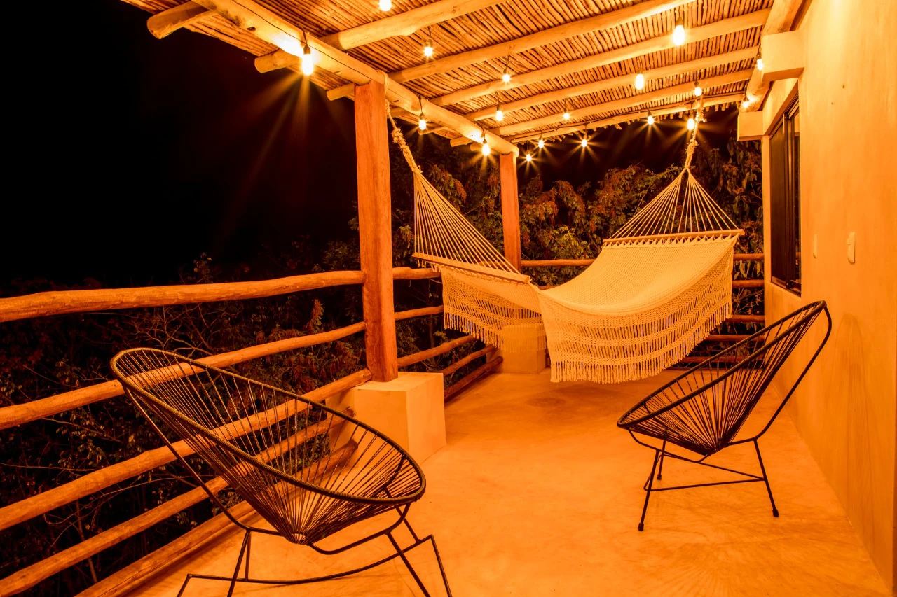 A escasos 200 metros de la playa encontrarás, nuestra habitación “Changa Maranga” la cual está ubicada en la parte superior del edificio, con una vista inigualable de la bahía y el atardecer de punta cometa, la entrada de la brisa marina refrescando todo el lugar es un plus maravilloso, tiene una hamaca en la terraza en la que podrás tomar siestas al aire libre y olvidarte de todo, a diferencia de muchos lugares de la zona, nosotros contamos con todos los servicios; aire acondicionado, ventilador, frigobar con provisiones, ducha con agua caliente, etc. es un espacio muy completo pero sobre todo muy confortable para que puedas disfrutar una estancia cómoda y relajada. Además, recuerda que tenemos internet Starlink con 60 Mbps de subida para que puedas ocupar el lugar también para trabajar sin preocuparte de que la conexión sea baja o inestable.