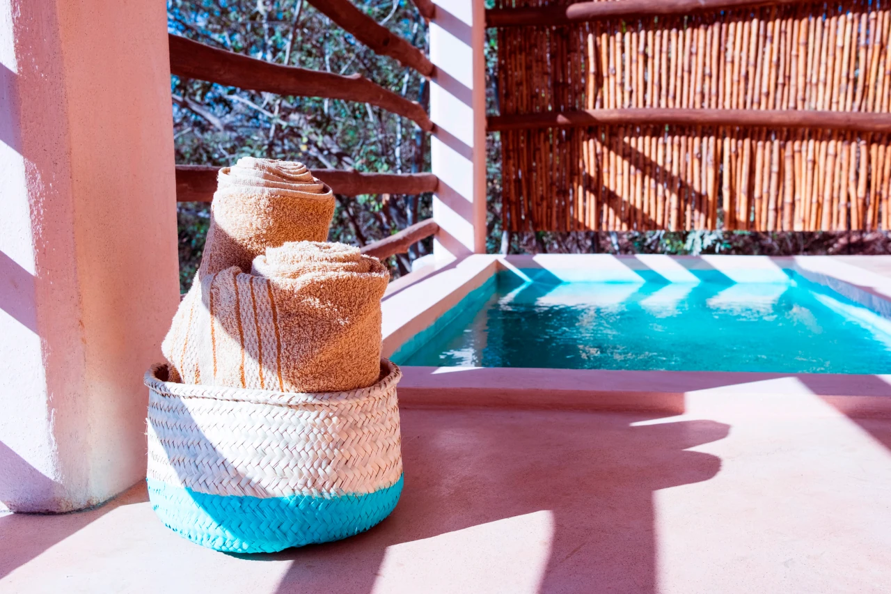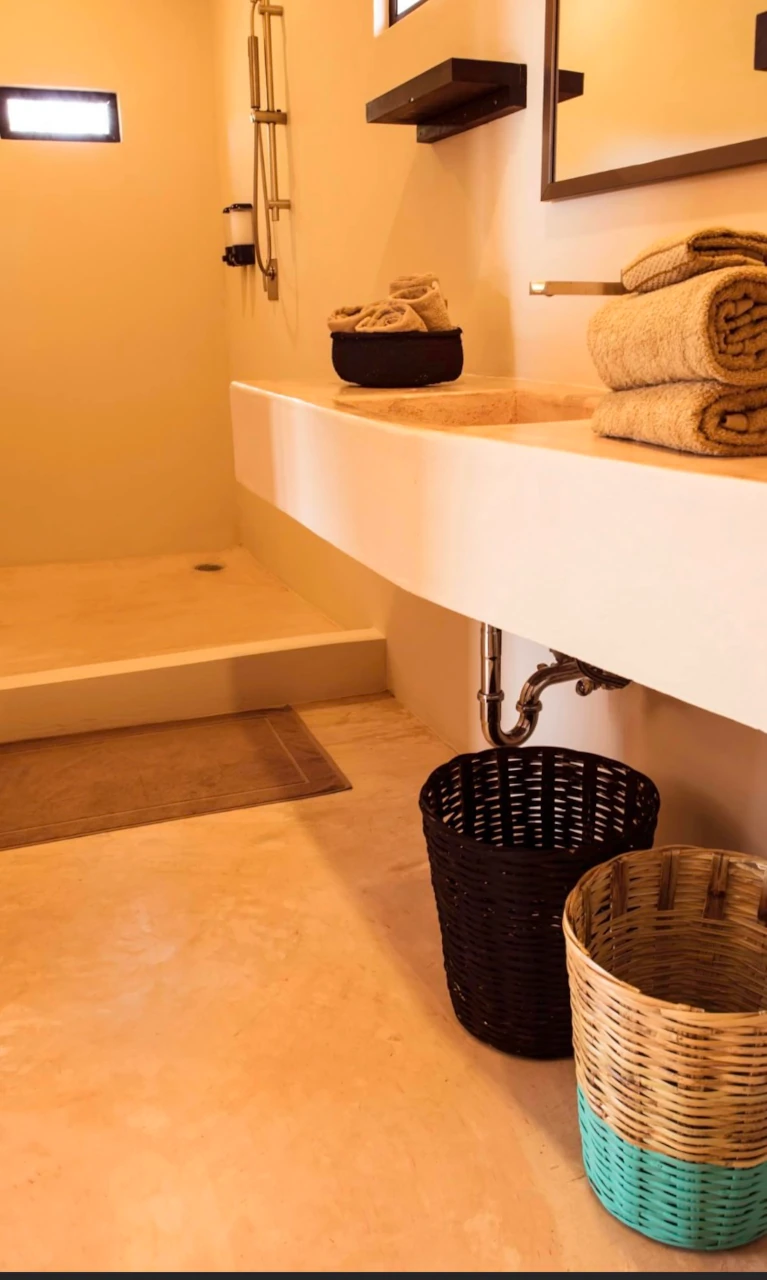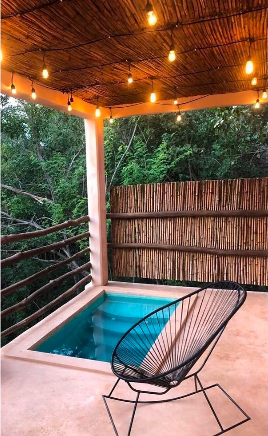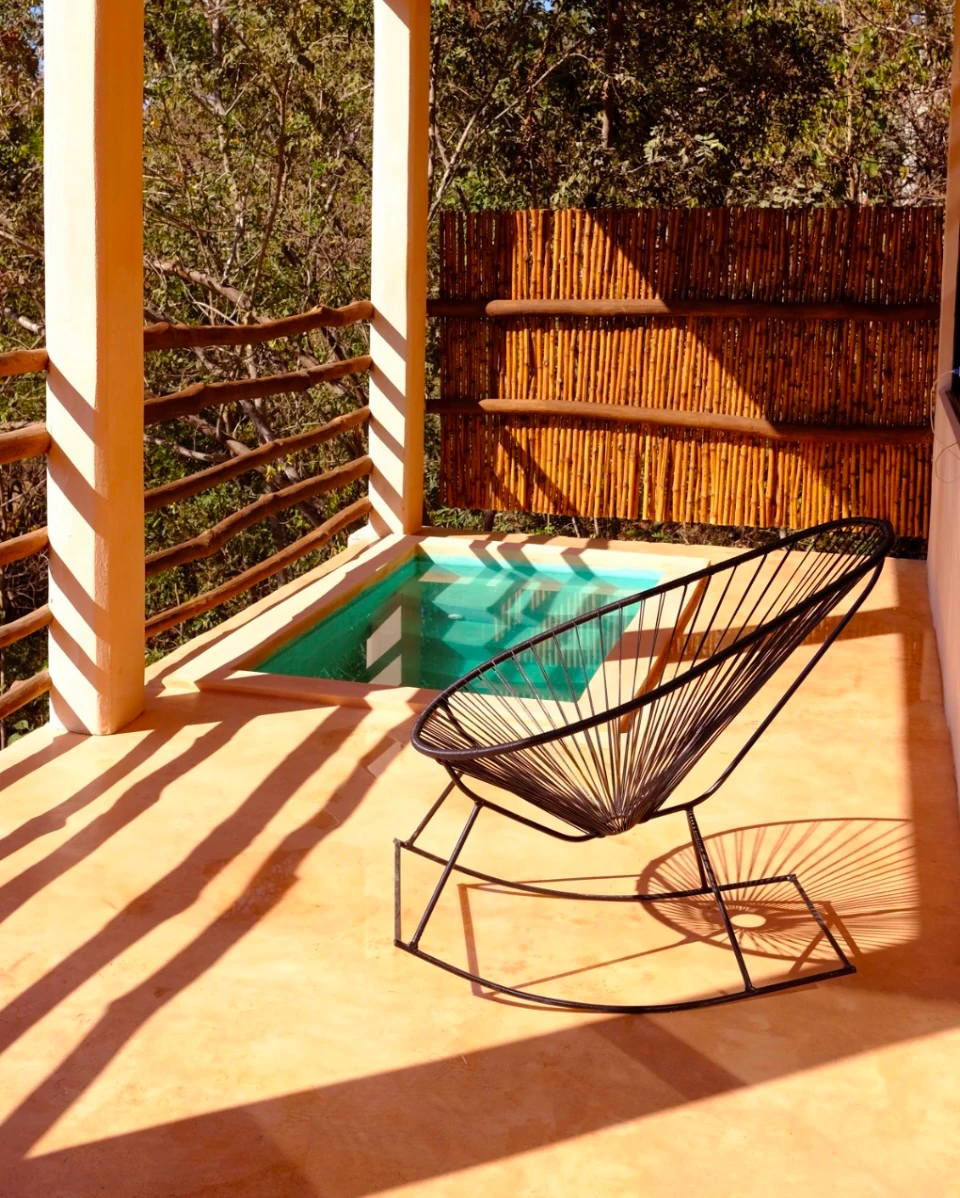 A tan solo 200 metros de la playa, hallarás nuestra habitación, “Maguila Gorila” la cual se encuentra ubicada en la Planta Baja del edificio, ésta habitación está un poco más integrada en la naturaleza de la zona, puede ser que en la terraza entre a saludarte alguna chachalaca que es un ave de la región muy platicadora e inofensiva, también alguna que otra rana, un mantis religiosa o similar, cuenta con una pileta privada en la terraza que te hará pasar un momento relajante y refrescante, dentro de la habitación tienes todo lo necesario para pasar una estancia cómoda, ducha de agua caliente, aire acondicionado, suave ropa de cama, una frazada, frigo bar, cafetera, tés, etc. Además, recuerda que tenemos internet Starlink con 60 Mbps de subida para que puedas ocupar el lugar también para trabajar sin preocuparte de que la conexión sea baja o inestable.